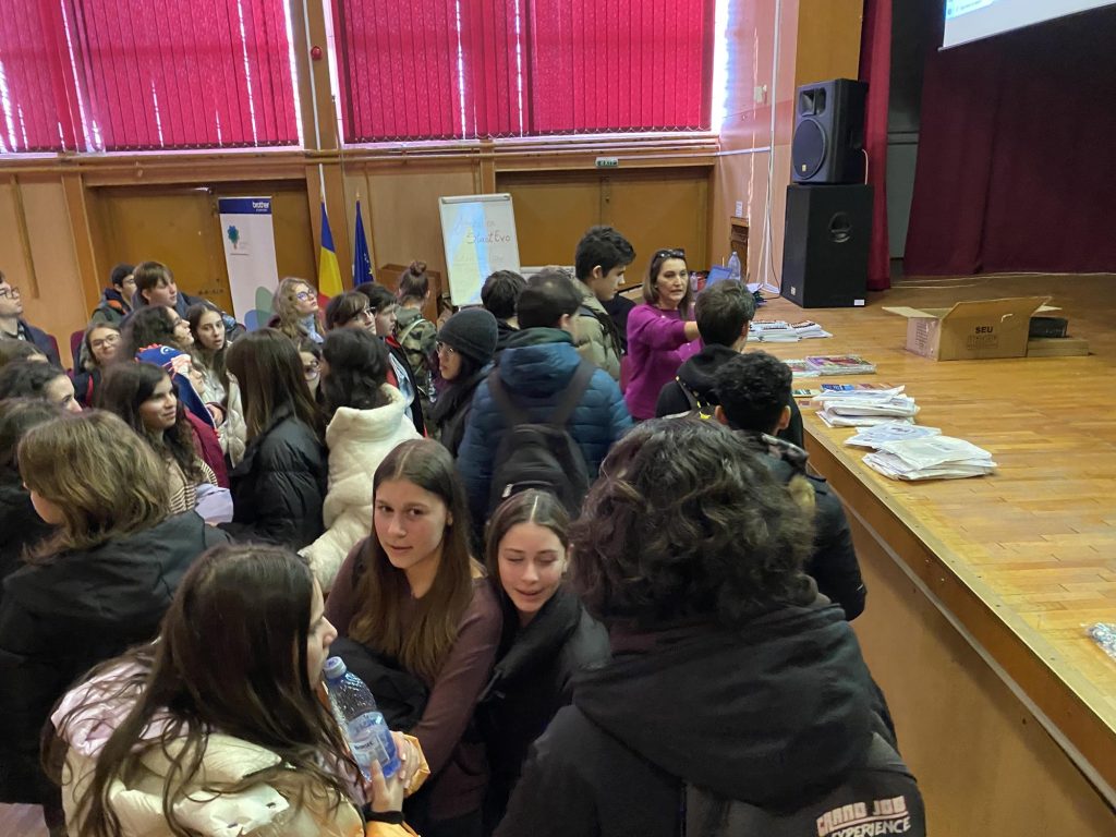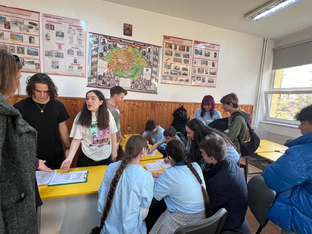 Toate clasele de a IX-a (201 elevi) + 50 voluntari de la clasele terminale + 14 profesori.