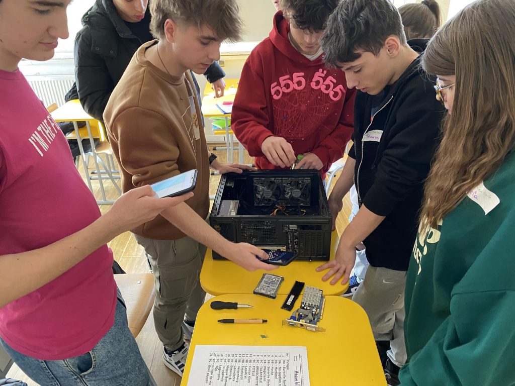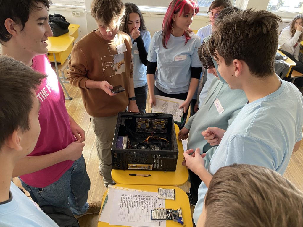 Copiii trebuiau sa asambleze componentele intr-un calculator (RAM + Procesor + HDD + placa video). Aici coordonatorul de proba a fost unul dintre juniorii Ferseta.