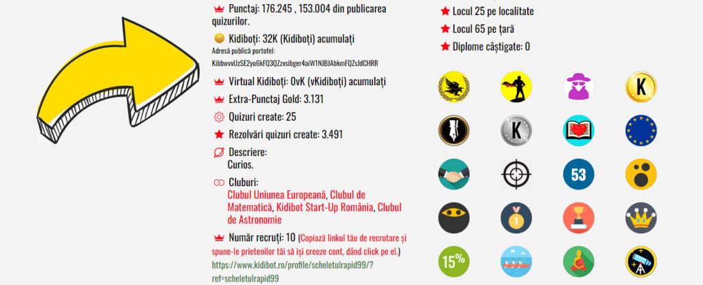 Dacă intri pe profilul tău public Kidibot, care este forma kidibot.ro/profile/userul_tau_Kidibot, o să vezi acolo câtă CRIPTOMONEDĂ Kidibot ai, câți vKidiboți ai momentan și care este adresa publică a porfofelului tău Kidibot (dacă altcineva dorește să-ți transmită Kidiboți)