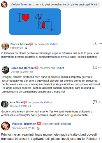 92,17% dintre părinții copiilor care folosesc Kidibot spun că îi ajută pe copiii lor să citească și să învețe mai mult.