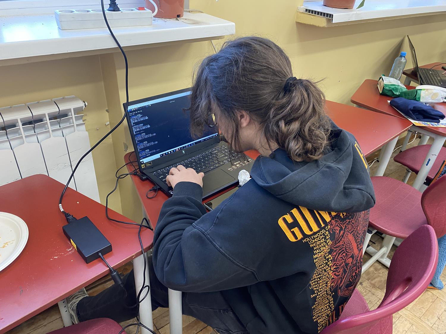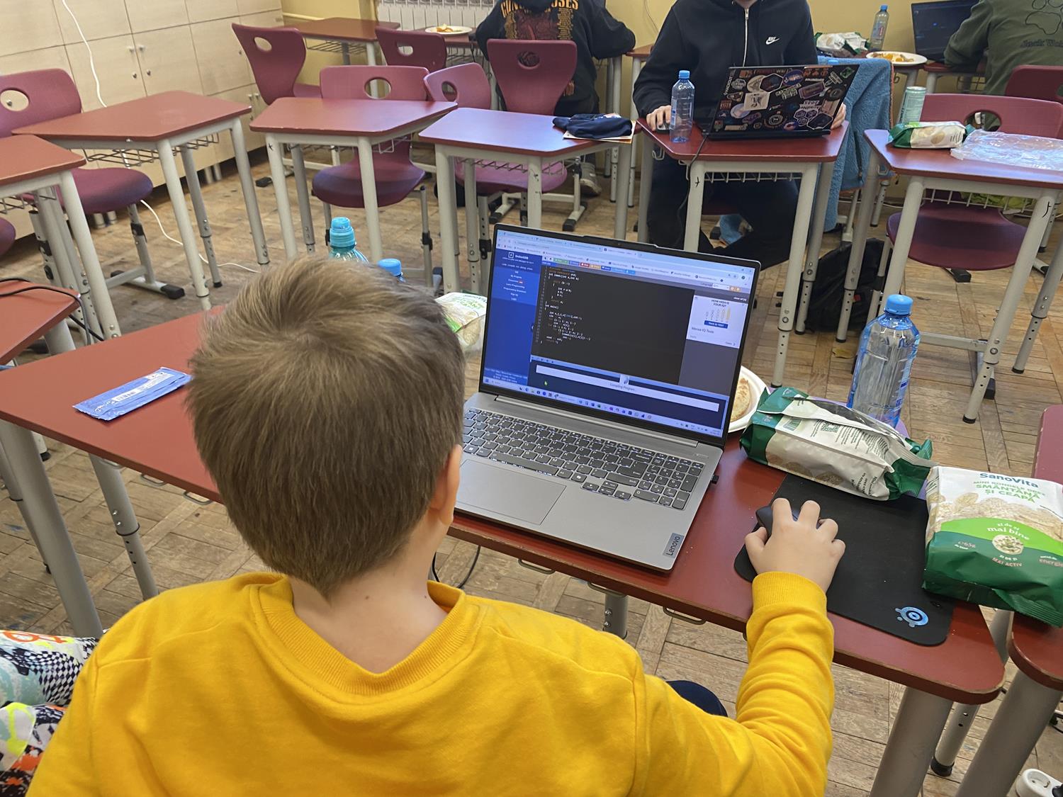 Am avut cativa participanti incepatori care au venit fara laptopuri, am adus de urgenta cateva, dar Matei i-a rezolvat rapid.