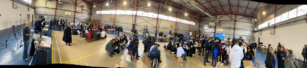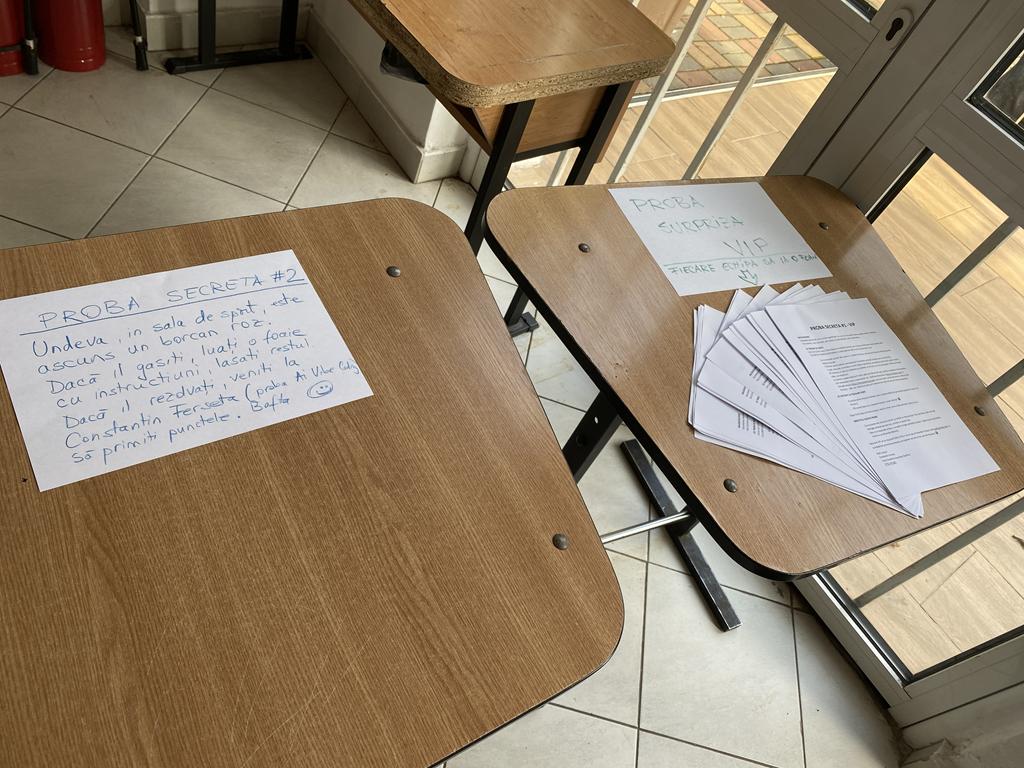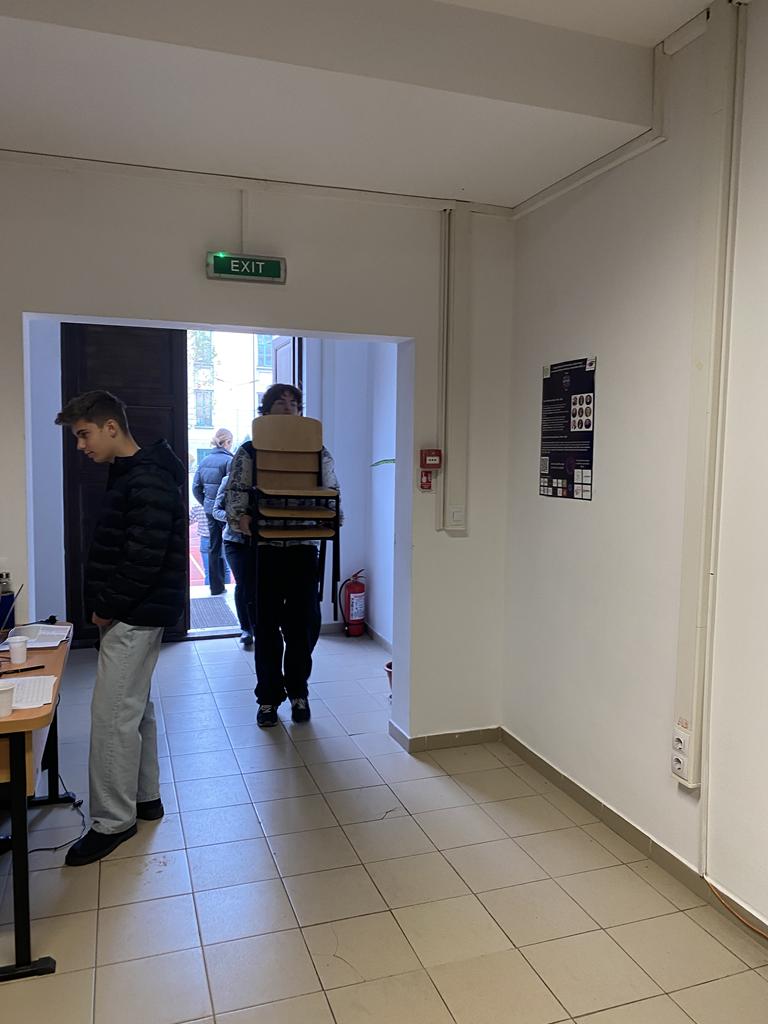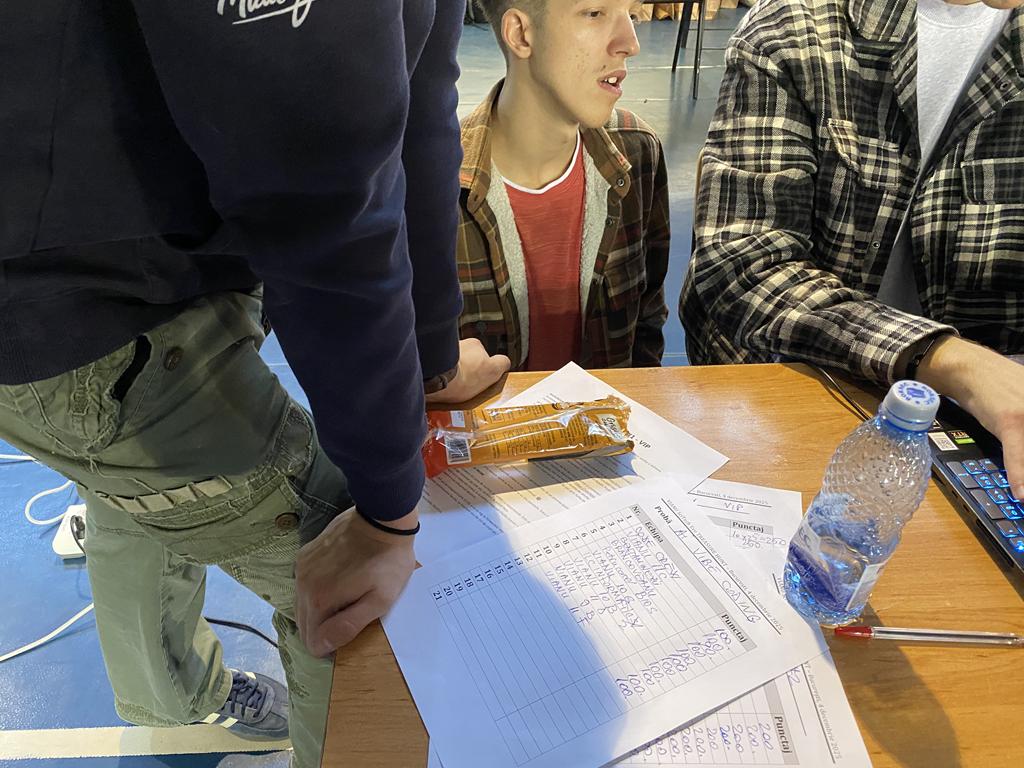 Noi initial am fi vrut sa facem evenimentul in 2 zile, in weekend. Nu s-a putut logistic. Pe urma am zis hai sa il facem si in scoala, nu doar in sala de sport si de festivitati – sa nu stam claie peste gramada. Nu s-a putut, ca erau ore. Inclusiv in sala de sport, erau copii care alergau la ora de sport pana in ora 10 :). Adica, am asteptat pana au terminat orele si in 2 ore a trebuit sa facem toate detaliile organizatorice. Deasemenea, eram limitati de ora de terminare. Au fost 25 probe, daca stateau 10 minute la fiecare, asta inseamna aprox 4 ore. Fara timpi morti, deplasare dintre probe, etc…