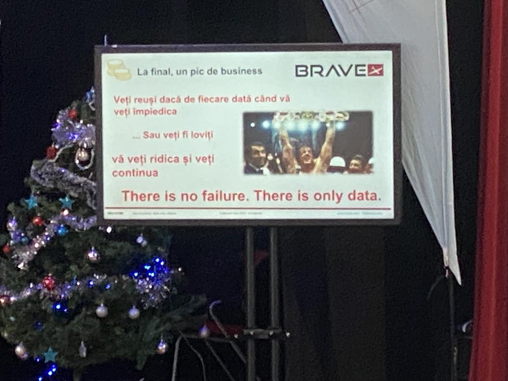 A facut un crash course in drone (cu aripa fixa versus rotoare, plusuri, minusuri). Suntem onorati ca sa fi avut la eveniment niste inovatori de talie globala. Mie personal cel mai mult mi-a placut slogalul lui: There is no failure. There is only data.