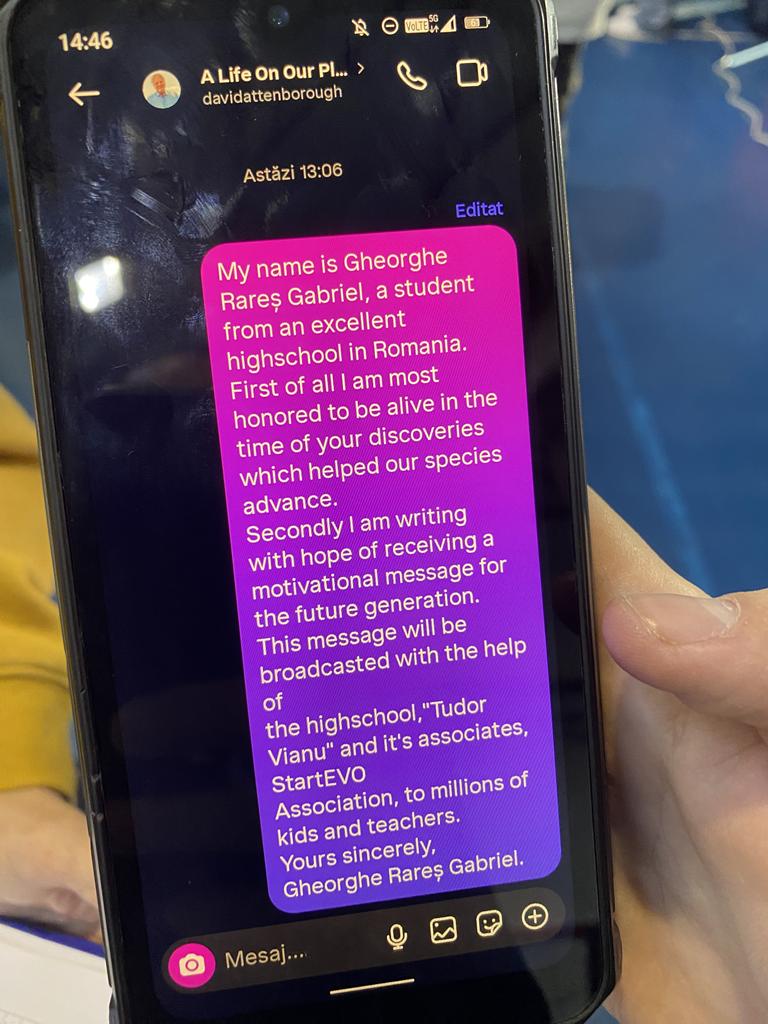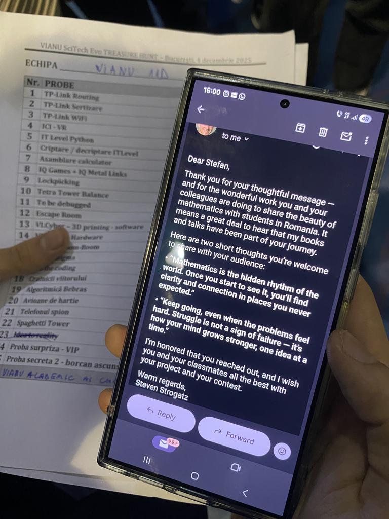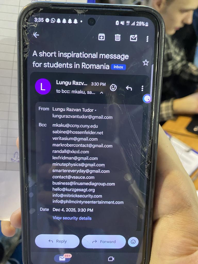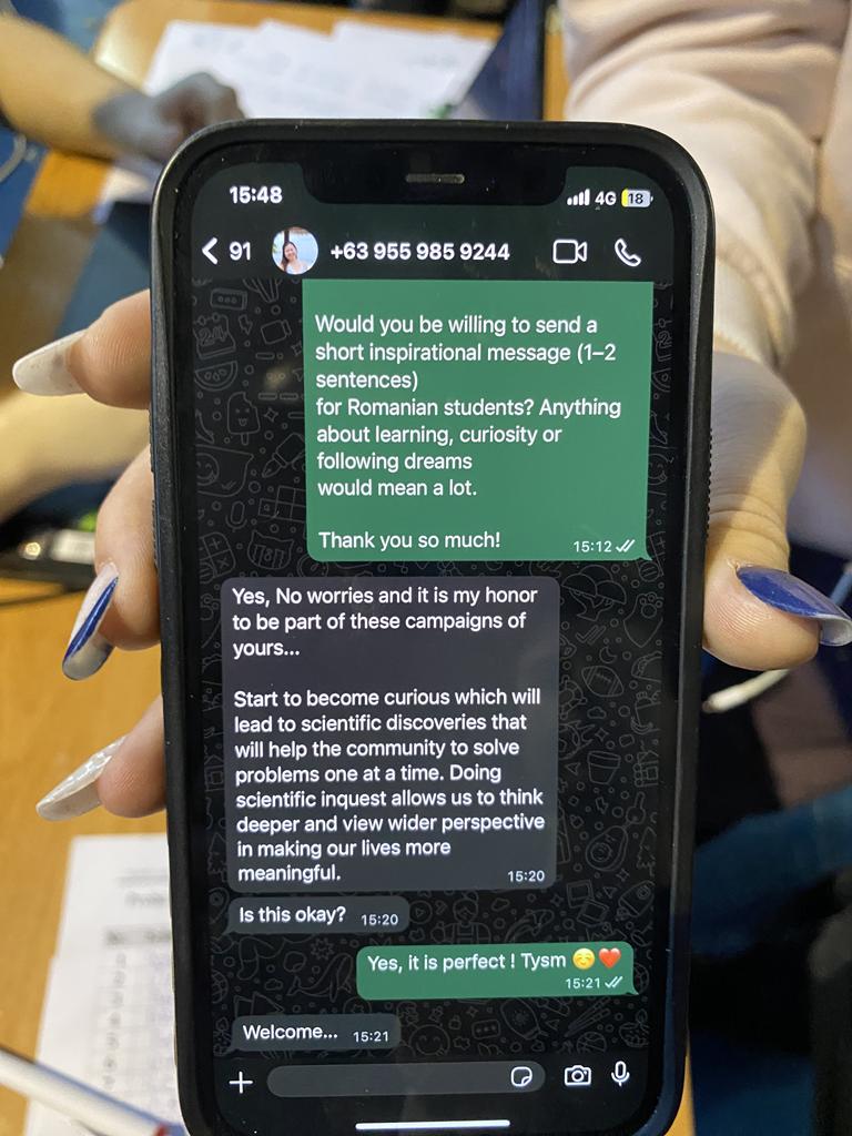Proba Secreta #1 – elevii trebuiau sa vorbeasca cu VIP-uri din domeniul stiintei si tehnicii la nivel planetar, sa le ceara un indemn motivational pentru copiii din Romania, ca sa invete mai multa stiinta. Eu eram constient ca in 4 ore sansele ca cineva sa le raspunda sunt infime. De aceea am zis ca ii motivez sa iasa din zona de confort, ca sa schimbe niste destine. Am ramas surprins sa vad rezultatele.:)