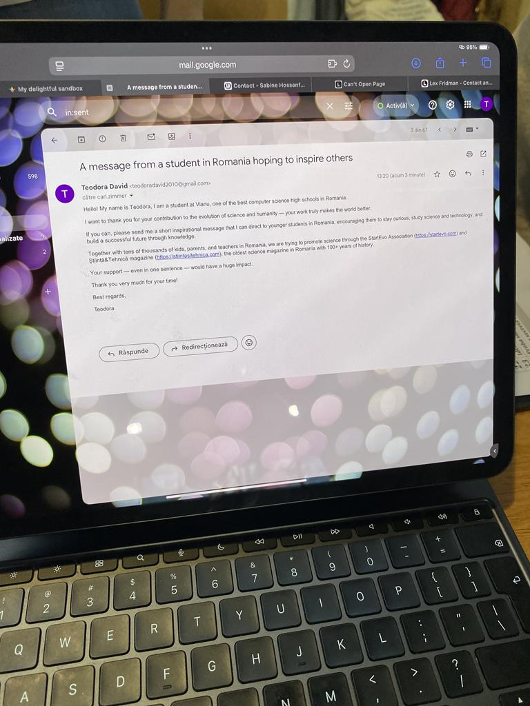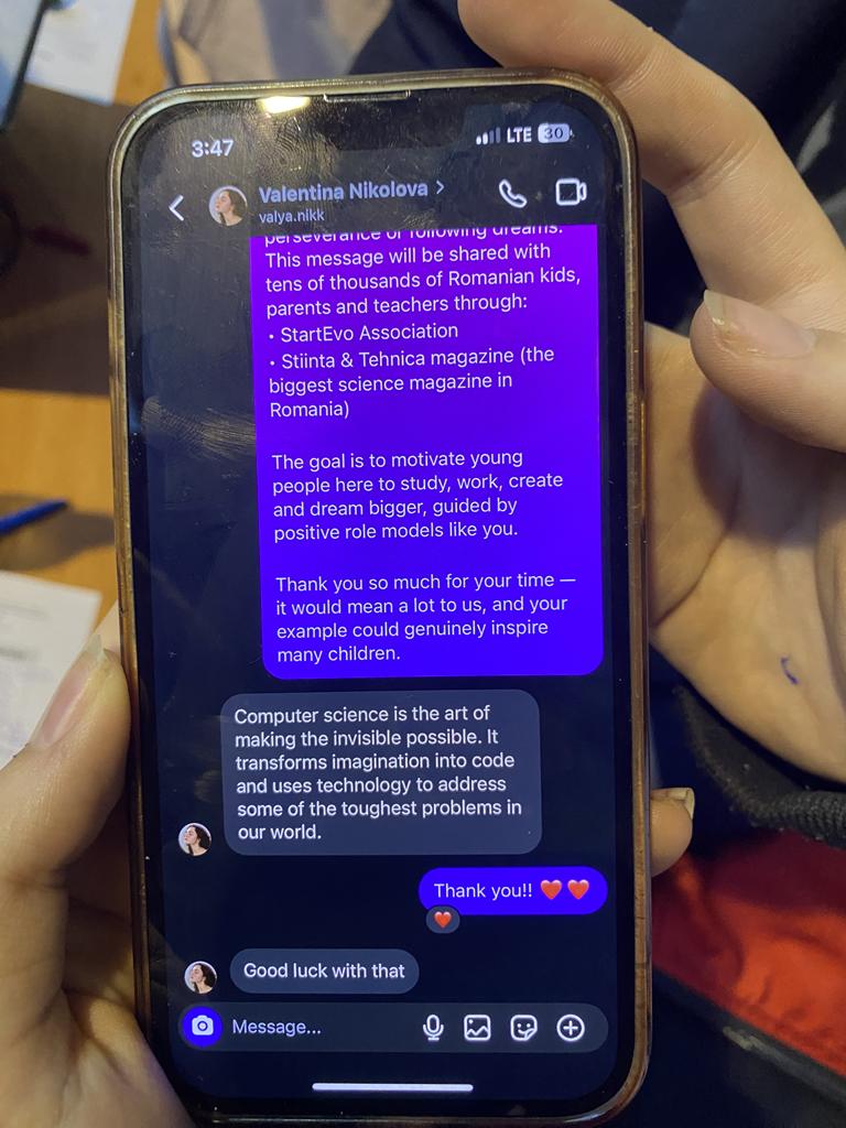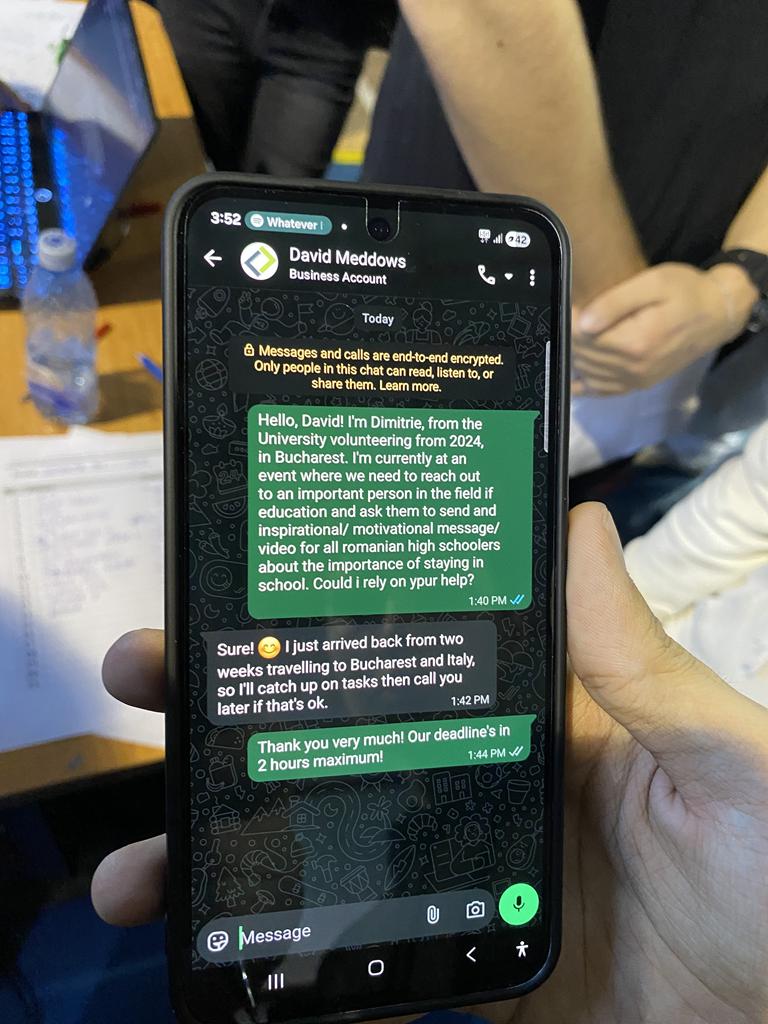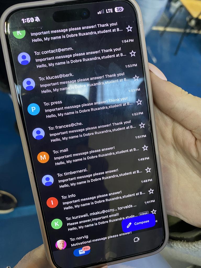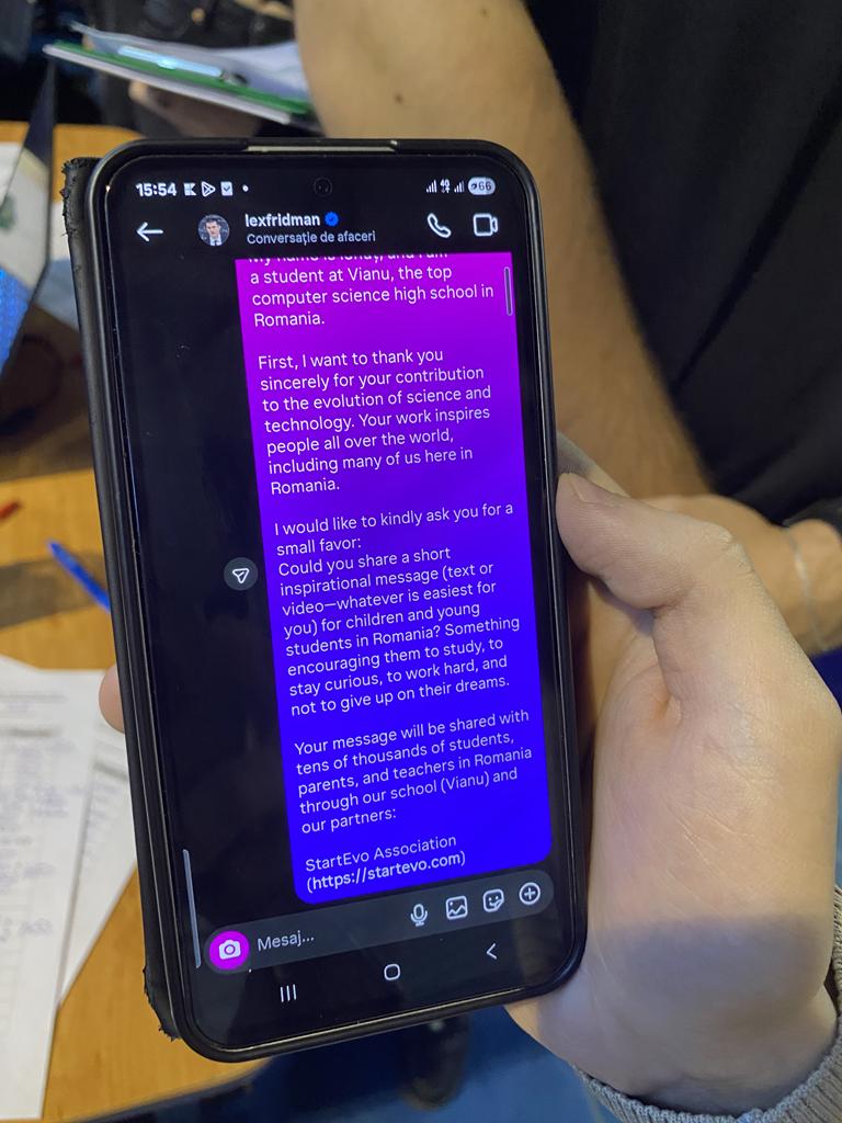 Proba Secreta #1 – elevii trebuiau sa vorbeasca cu VIP-uri din domeniul stiintei si tehnicii la nivel planetar, sa le ceara un indemn motivational pentru copiii din Romania, ca sa invete mai multa stiinta. Eu eram constient ca in 4 ore sansele ca cineva sa le raspunda sunt infime. De aceea am zis ca ii motivez sa iasa din zona de confort, ca sa schimbe niste destine. Am ramas surprins sa vad rezultatele.:)