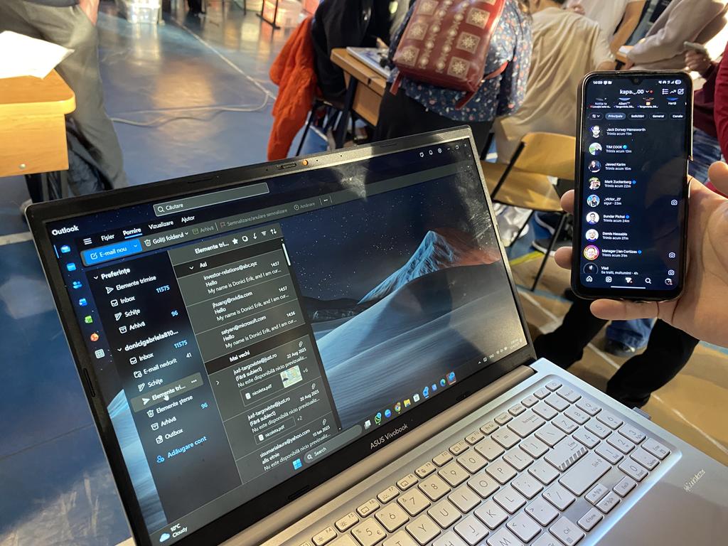 Wi-Fi-ul la locatie exista, chiar avea semnat foarte bun. Dar, ca la orice liceu IT care se respecta, sysadminul este destul de atent si blocheaza porturi, limiteaza trafic, limiteaza site-uri, etc.. Asa ca a trebuit sa venim cu propriul internet. Ne asteptam la asta si a fost OK. Partenerii nostri de la TP-LINK au venit cu o valiza intreaga care a dat internet 5G. Extrem de util ca backup.