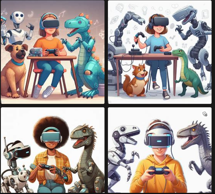 - Periodic, Kidibot a trimis pe email membrilor din club o provocare interesantă, ce implică utilizarea unor unelte de Inteligență Artificială. De exemplu, să creeze un afiș pentru o petrecere de Halloween, să genereze o clădire pe care ar dori să o aibă în localitatea lor sau să genereze niște personaje de joc video. Aici sunt unele dintre cele mai interesante proiecte primite.