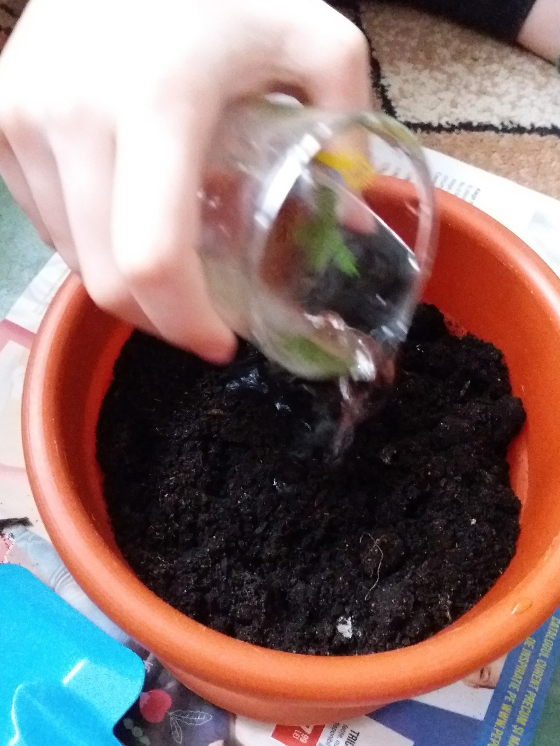 Am ajutat la pus pamant in ghiveci, am pus semintele in pamant si la final am pus apa pentru ca semintele sa creasca si sa scoata capul din pamant.