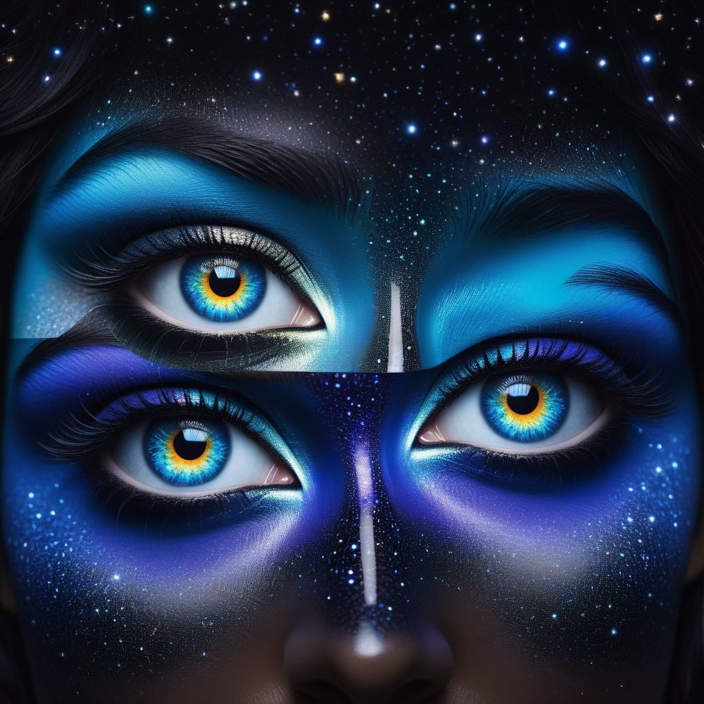 Imaginea creează o atmosferă de mister și minunare, captivând privitorul cu detaliile sale strălucitoare și neobișnuite. Personajul pare a fi o entitate cosmică sau un spirit al nopții, aducând o aură de magie și incertitudine în jurul său.